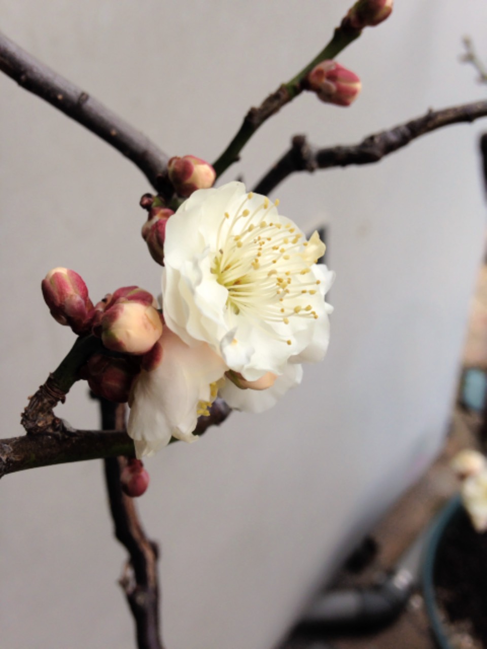 時折、梅の香りを感じます。 寒くとも春は少しずつ近づいておりますね。 庭の雲竜梅も咲きました。