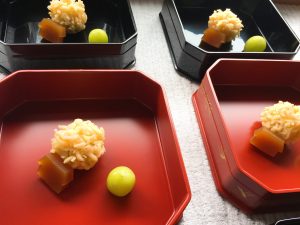 飯午茶事は菓子茶事とも言われいますので、主菓子・干菓子ともにお菓子を3種ずつご用意して。