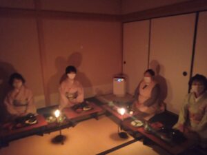 暁茶事は、朝4時頃からのスタートですが、茶事倶楽部では、施設の特性をフルに生かして、