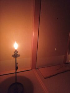 夜咄茶事の流れに沿って、手燭の交換、前茶など、夜咄茶事の楽しみと