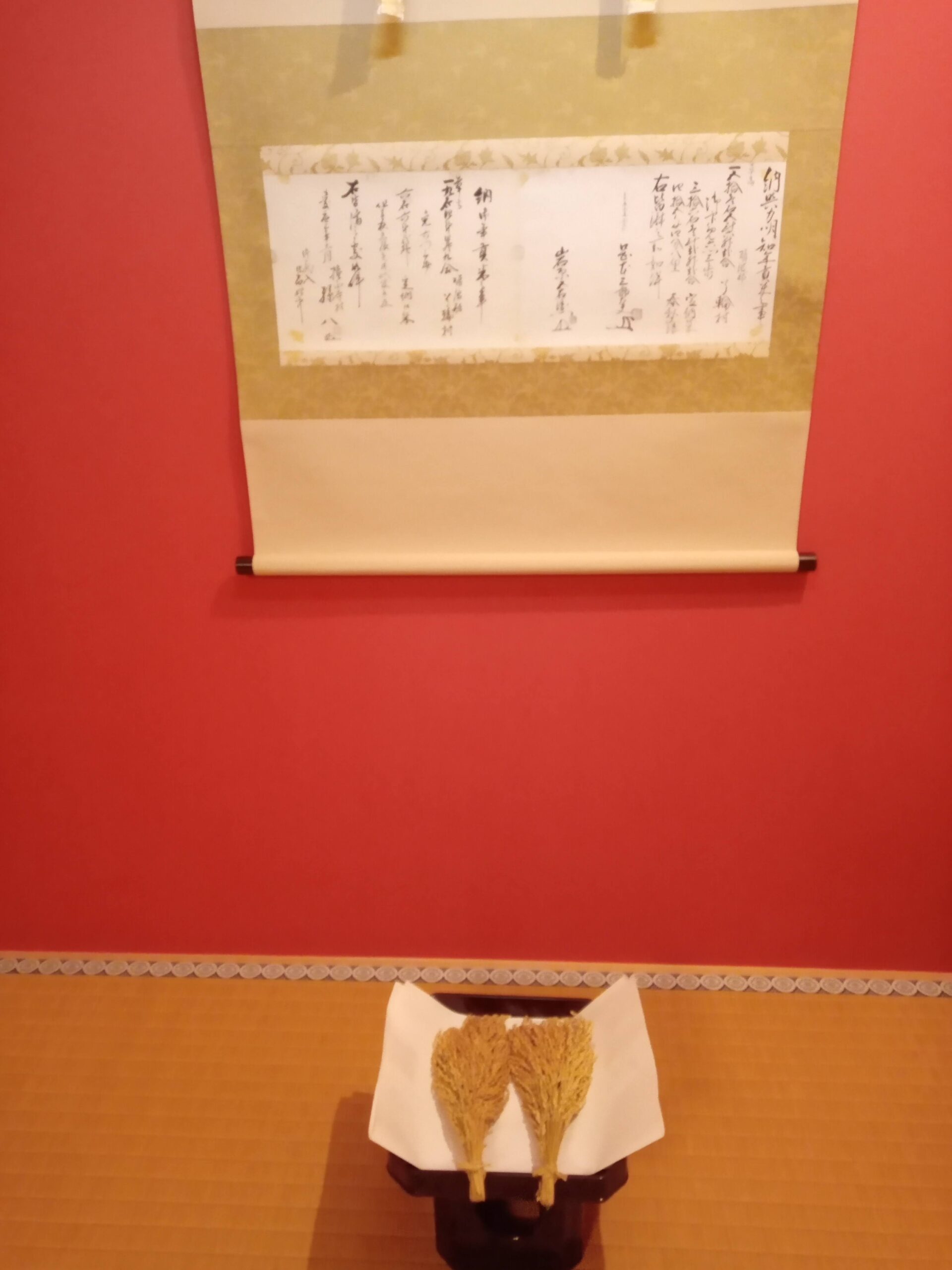 秋の実りに感謝しつつ、お米にまつわる掛軸を。