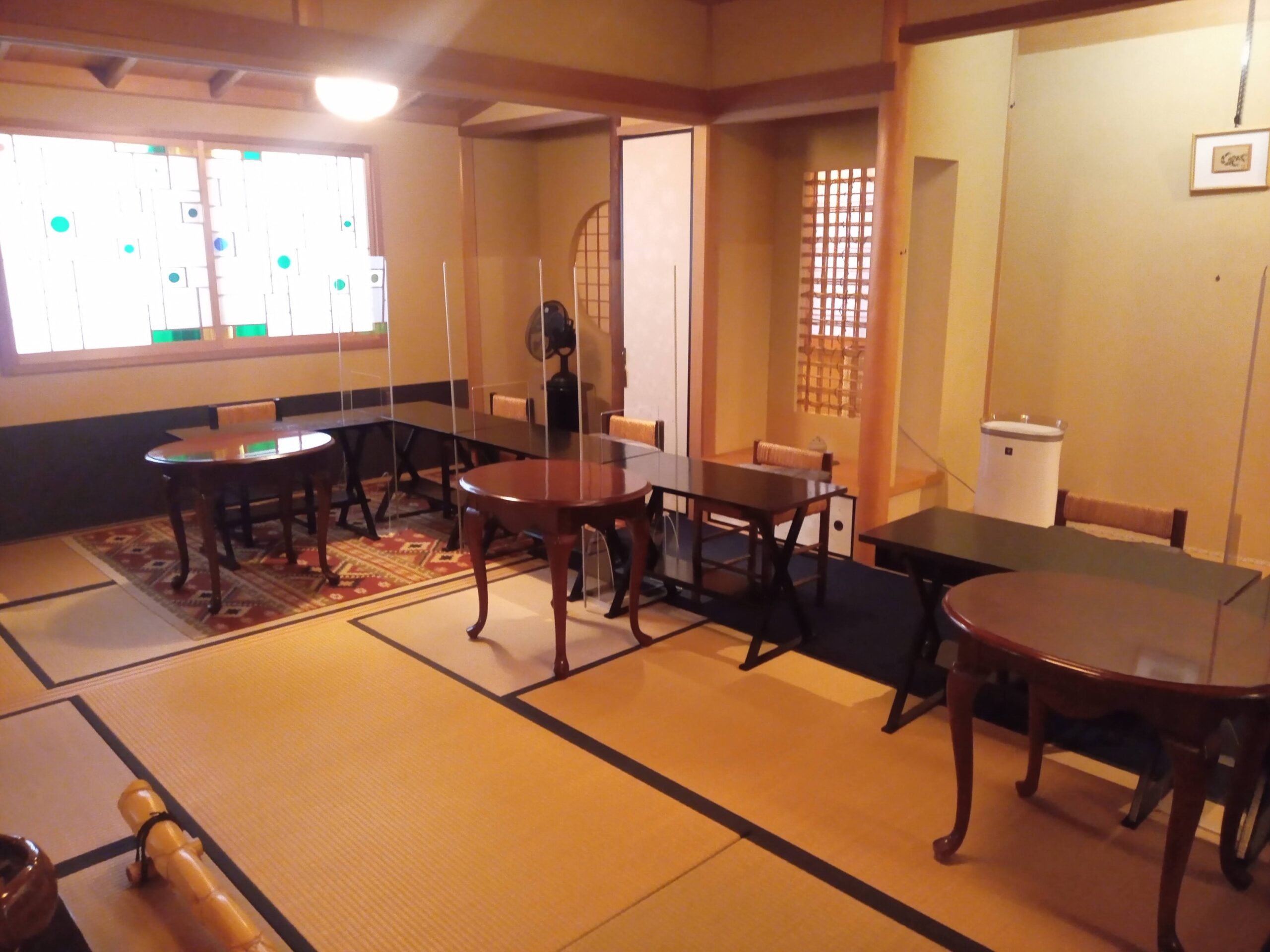 写真では見ずらいですが、お一人様ごとに特注パーテションを設置して、