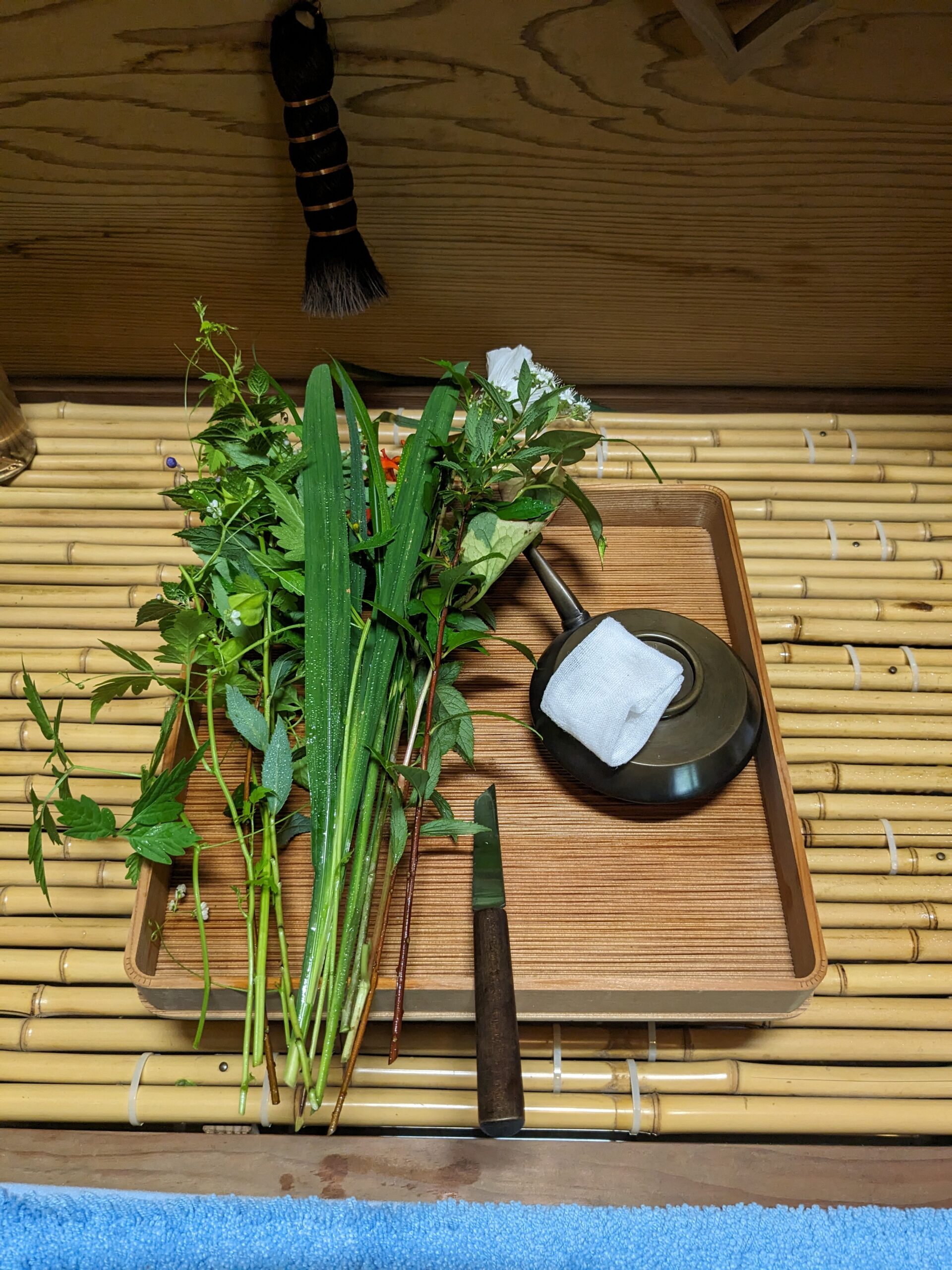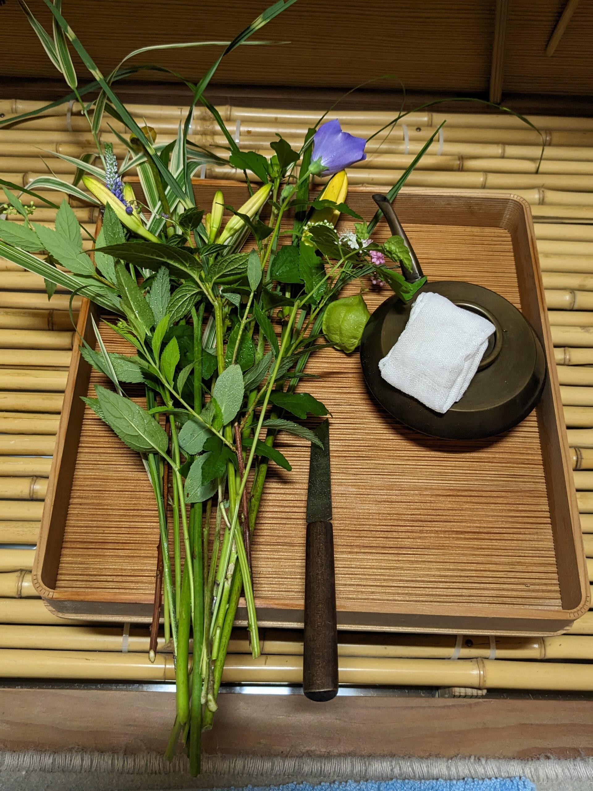 ご参加者様のF様のご提案で花所望となり、涼しさの中にも華やかな朝茶事となりました。