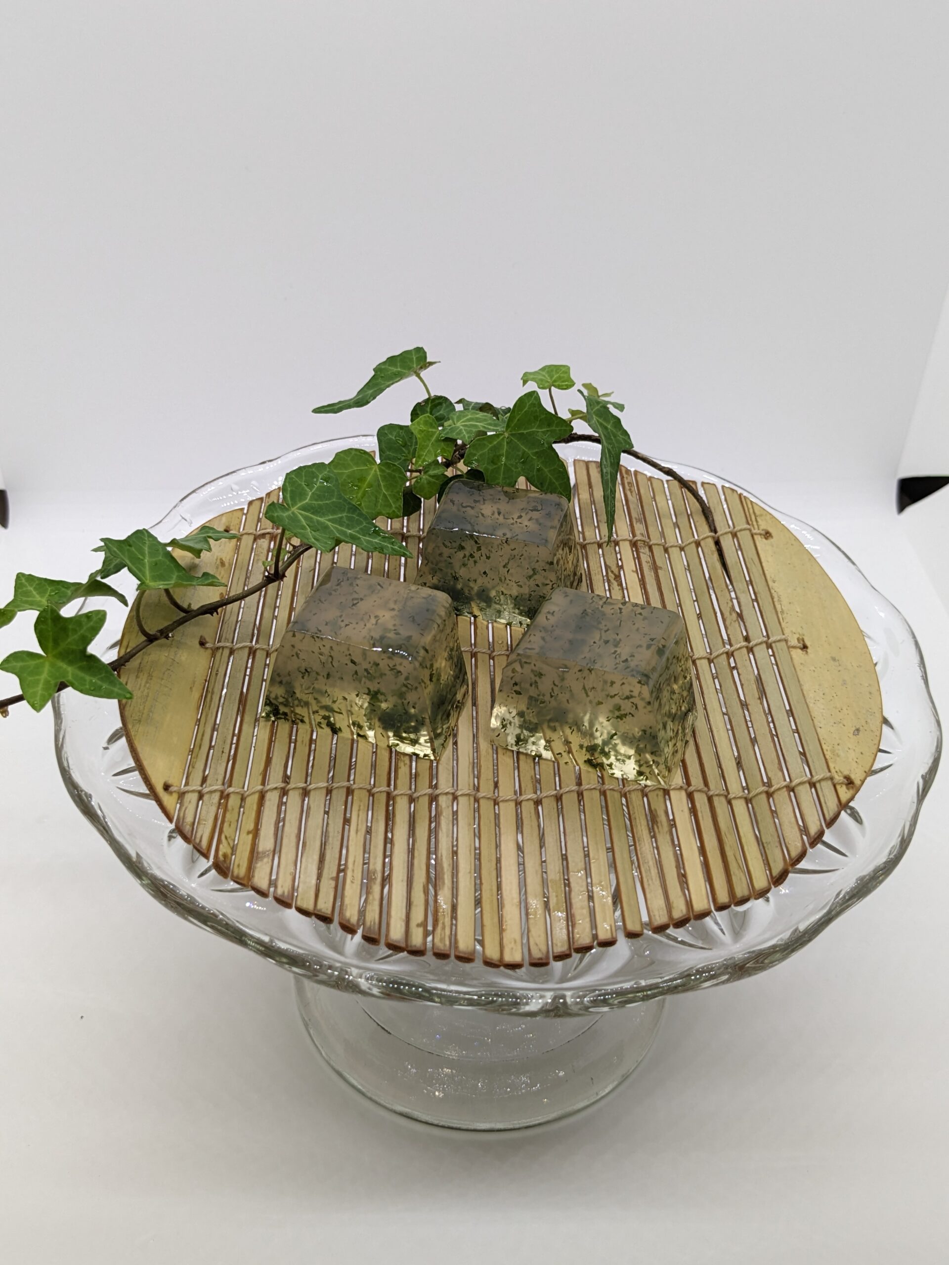 「青じそ」の錦玉羹を見た目の涼やかさを演出してみました