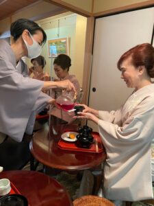 緊張することの多い茶事ですが、当倶楽部では楽しく体験していただけるよう心掛けています。